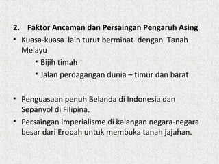 8122019 Kesan-kesan Kedatangan Kuasa Asing. Revolusi Perindustrian di Britain pada kurun 18 kerajaan British mula melihat negeri-negeri Melayu sebagai sumber ekonomi. Jepun telah memerintah tanah Melayu sehingga 12 September 1945.