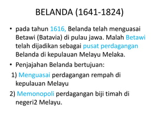 Baca versi flipbook dari PENJAJAHAN DI TANAH MELAYU. Manakala di Indonesia Belanda telah memperkenalkan beberapa dasar Ekonomi yang hanya menguntungkan mereka. Ahmad Basyir menerbitkan PENJAJAHAN DI TANAH MELAYU pada 2020-08-09.