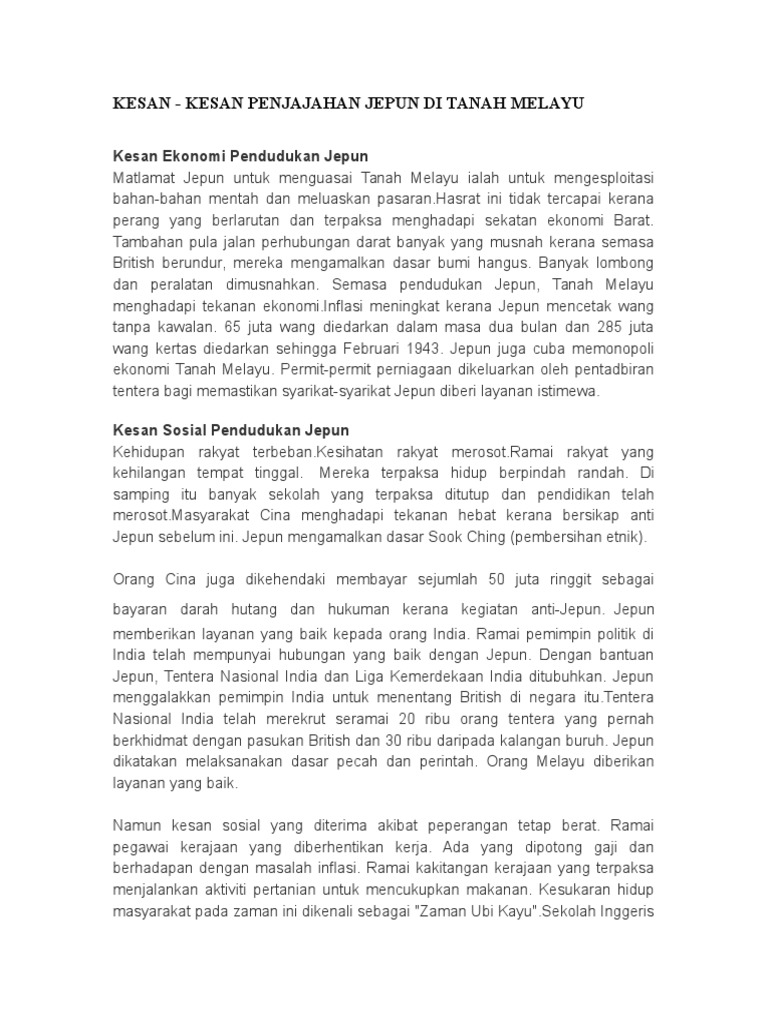 Kesan Kesan Penjajahan Jepun Di Tanah Melayu Pdf